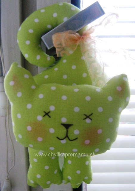 Na prvej foto je mačička na zavesenie na kľučku (na dvere alebo na okno). Šila som ju ako darček pre synovca.